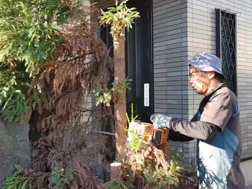 #伐採 兵庫県高砂市梅井 ゴールドクレスト伐採模様