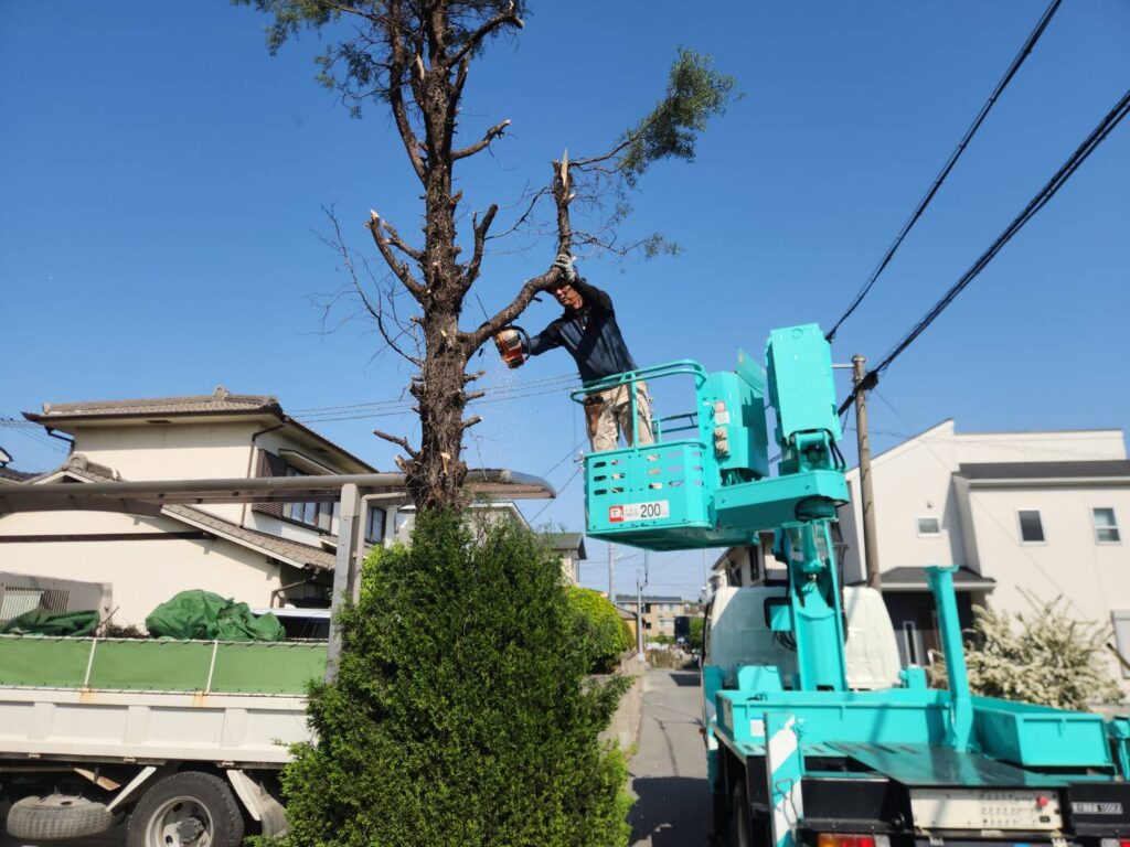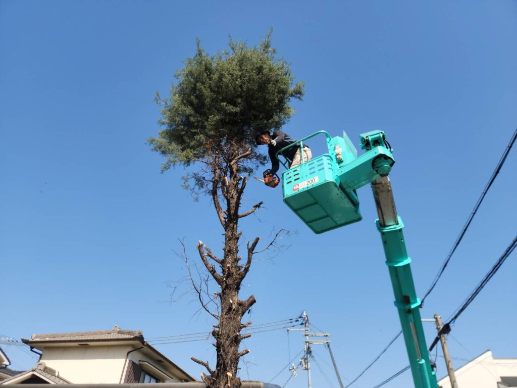 高木伐採(高所作業車対応|姫路市飾磨区の施工事例